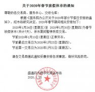2020春节放假休市公告盛通四方三大板块(九龙,秦岭,四方)