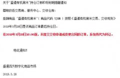 关于盛通有机黑米持仓订单即将到期提醒通知 尊敬的各购销商、服务中心、交收仓库: 挂牌商品 盛通有机黑米( 商品代码 YJHM ) 按照《盛通有机黑米购销、交收规则》2019年3月29日是该商品订单更后...